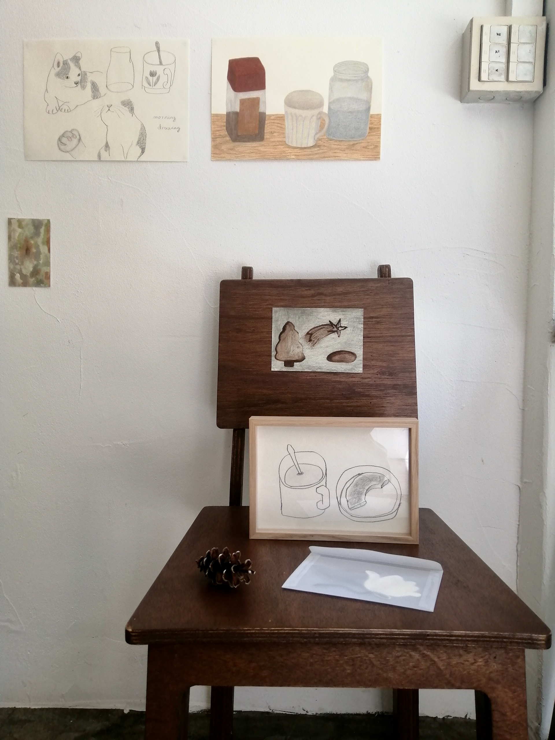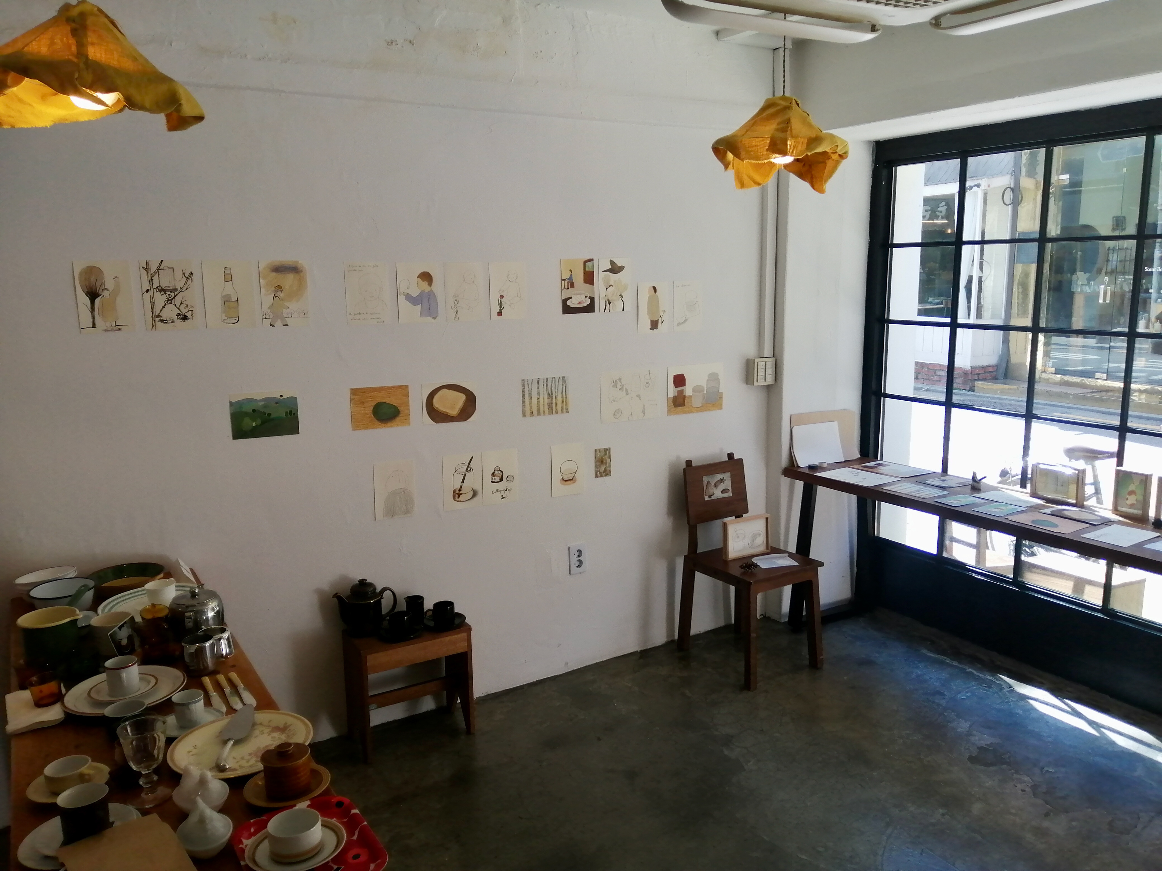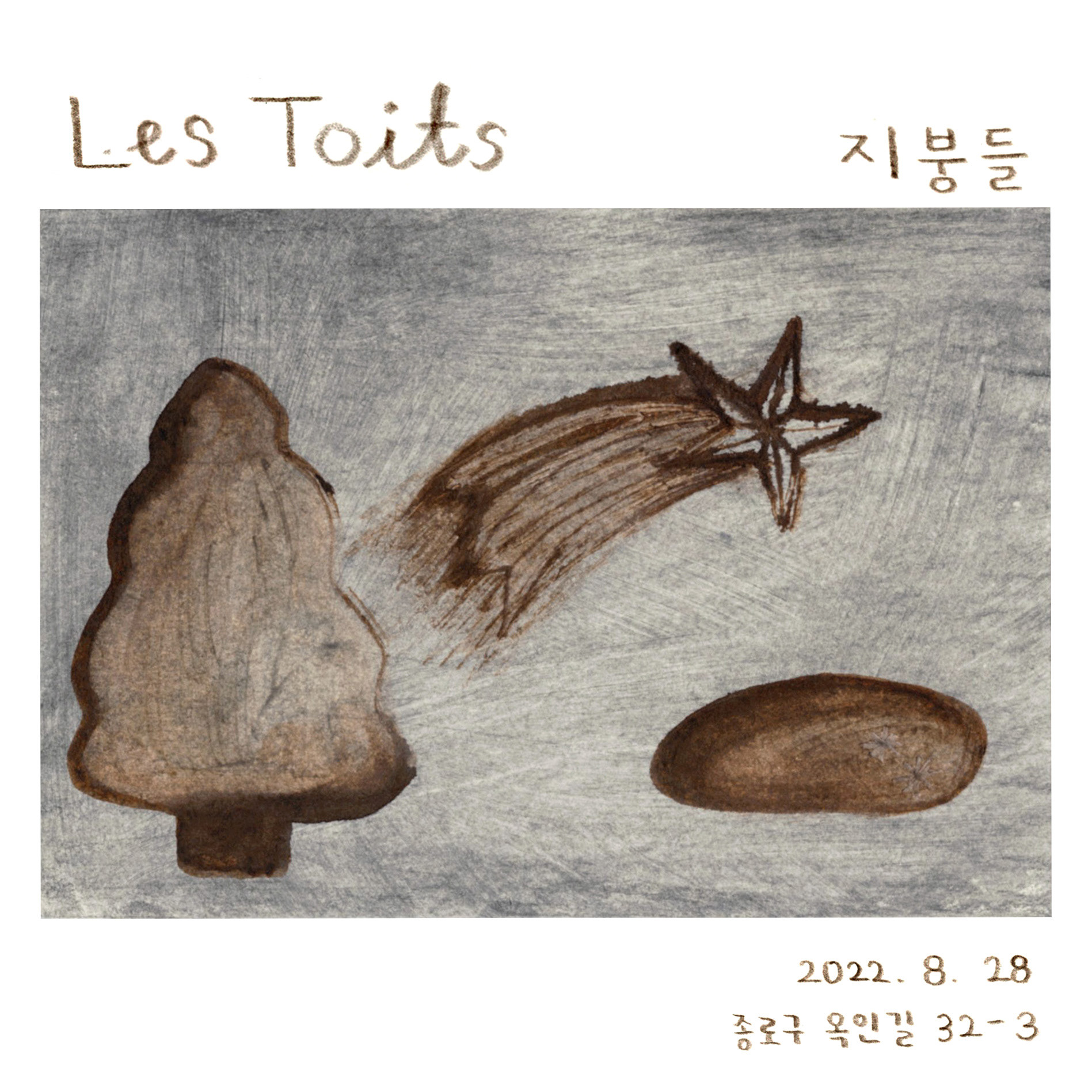 오늘 여기 모인 세 친구들도 그 지붕 아래에서 꿈을 꾸었고, 파리의 수많은 이야기 중 하나였습니다. 우리가 지붕 아래에서 꾸던 꿈을 이 곳 옥인동에서 여러분들과 공유하고자 합니다. 파띠시에의 꿈을 꾸던 친구는 파운드 케이크와 구움과자를, 그림의 꿈을 꾸던 친구는 드로잉과 일러스트를, 요리사를 꿈꾸던 친구는 음식을 생각하고 온 도시를 여행하며 모은 빈티지 접시와 찻잔을 보여드리고자 합니다. 편안한 마음으로 오셔서 저희의 이야기가 담긴 오브제들을 함께 향유하면 좋겠습니다.